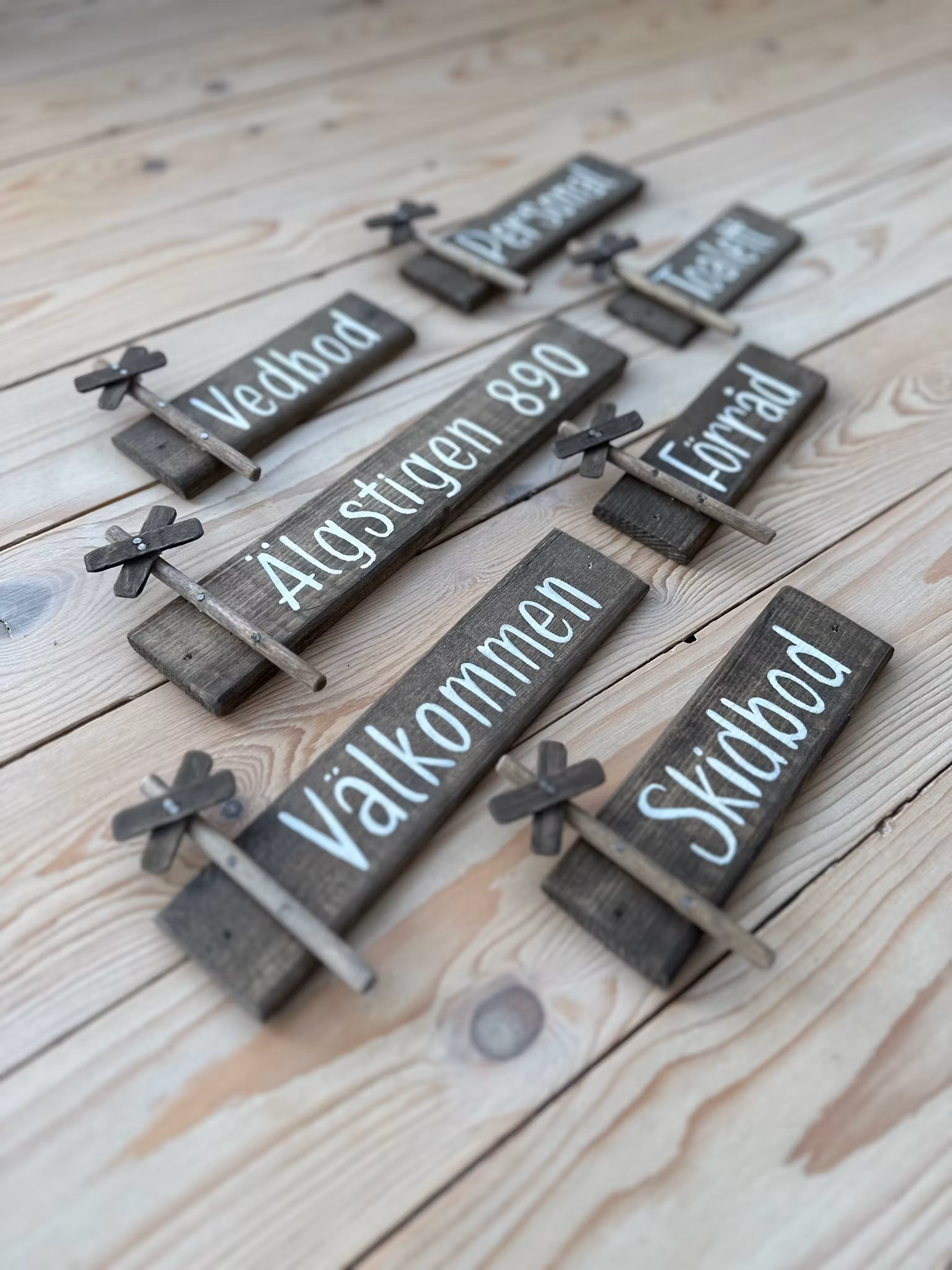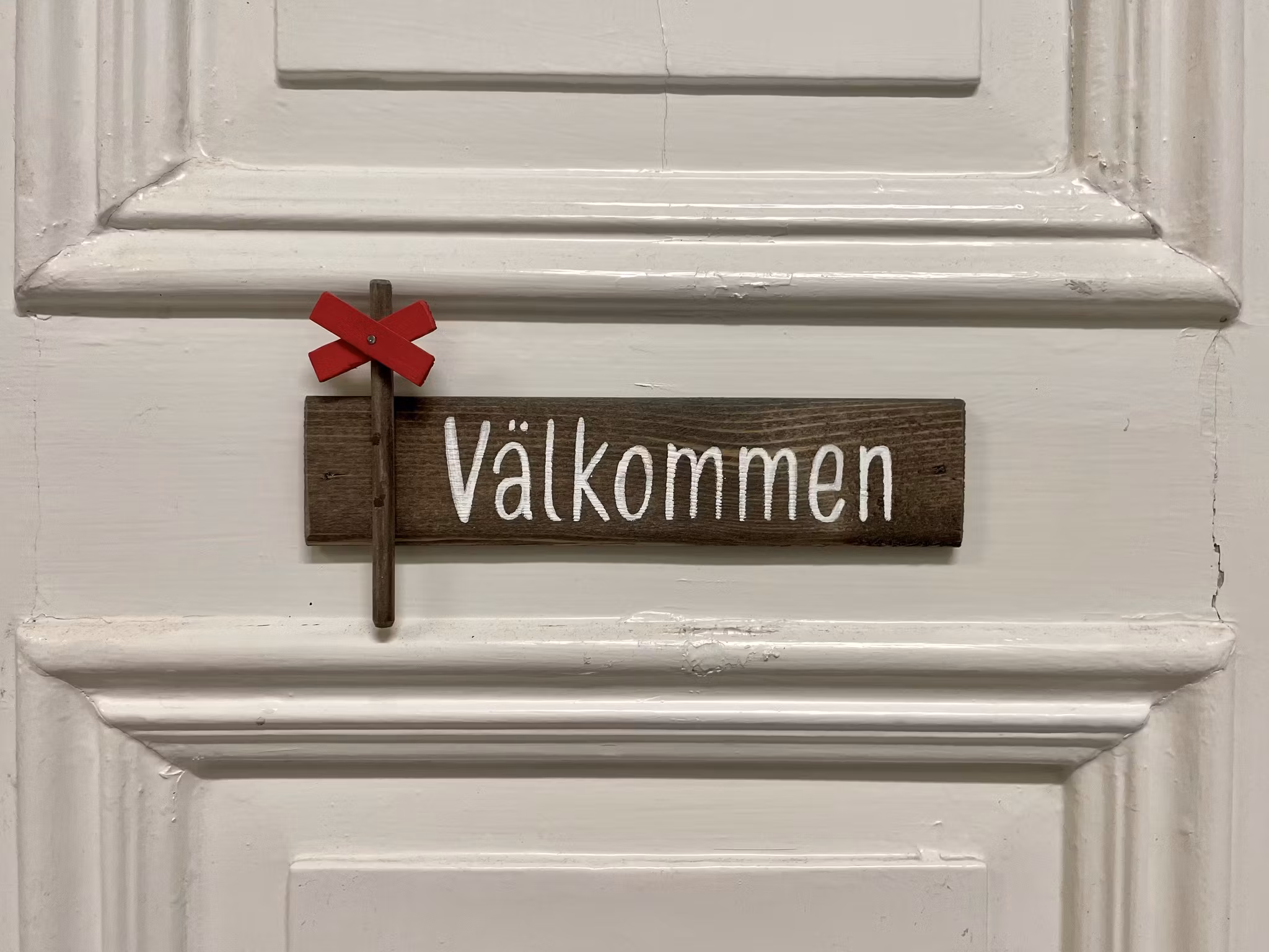 Välkommenskylt i trä ledkryss